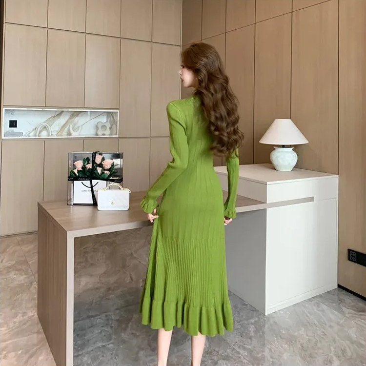Occasion: Daily Outfit Material: Synthetic Fiber Sleeve Length: Long Sleeve Color: Beige,Black,Light-green Size: XS-L Category: Basic & Casual Dresses..