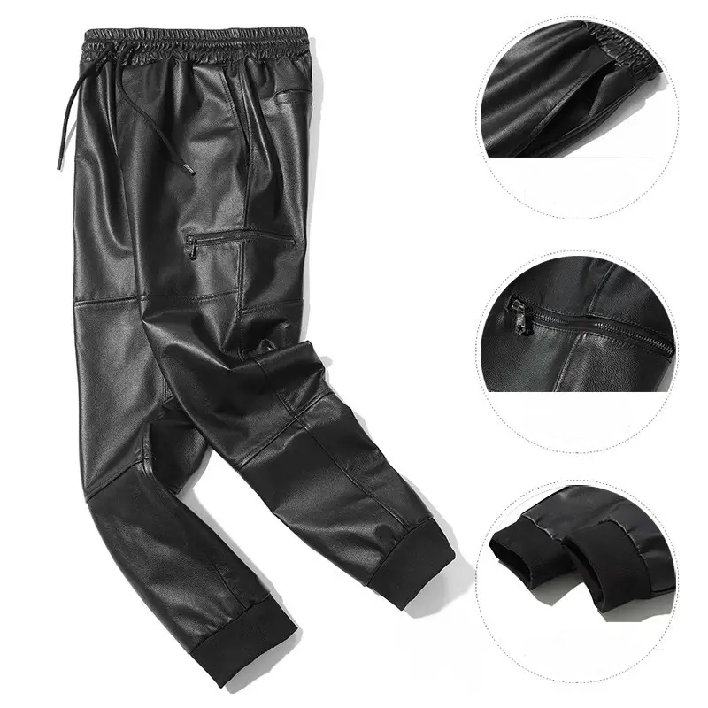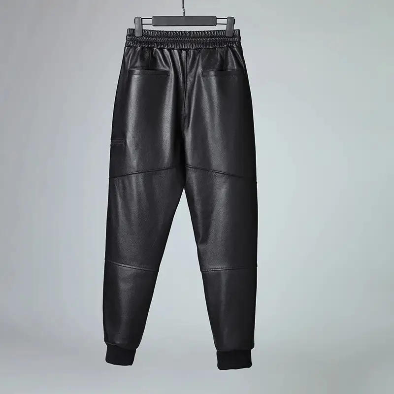 High-concerned Chemical:None Applicable Scene:Daily Closure Type:Elastic Waist Decoration:Pockets Thickness:Fleece Material:Genuine Leather Gender:Men Size:S-2XL Color:Black..
