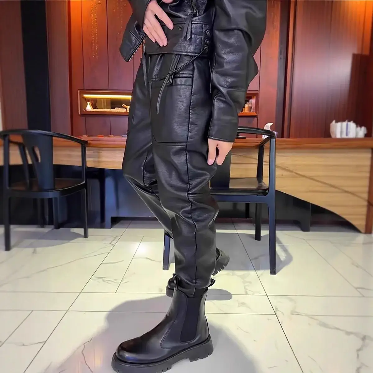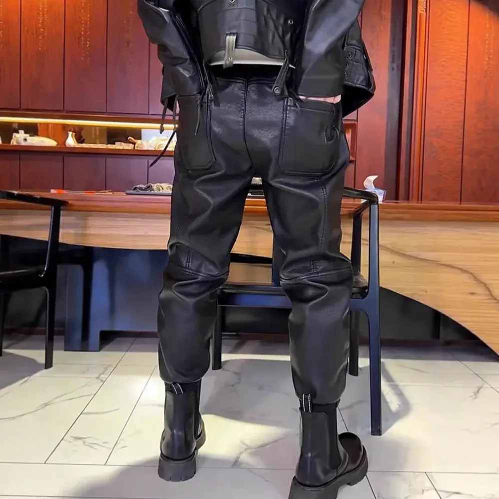 Winter Men Fleece Leather Pants Warm PU Leather Trousers Good Quality Thicker Warm Winter Pants