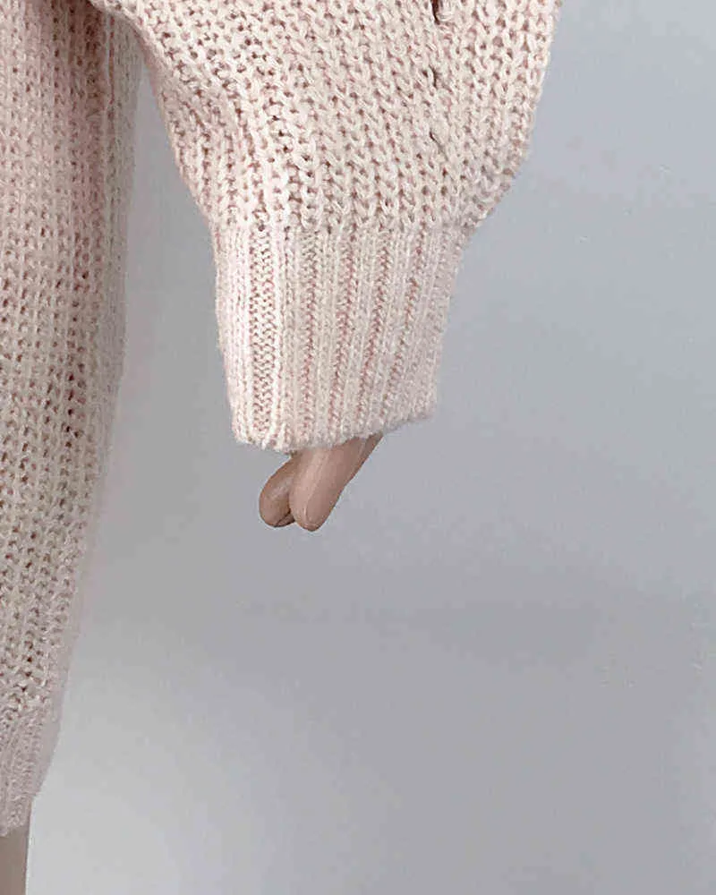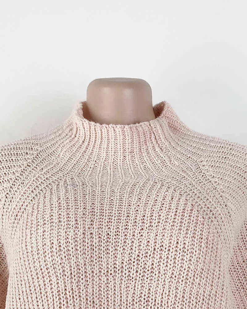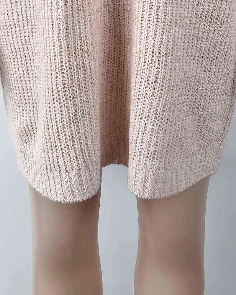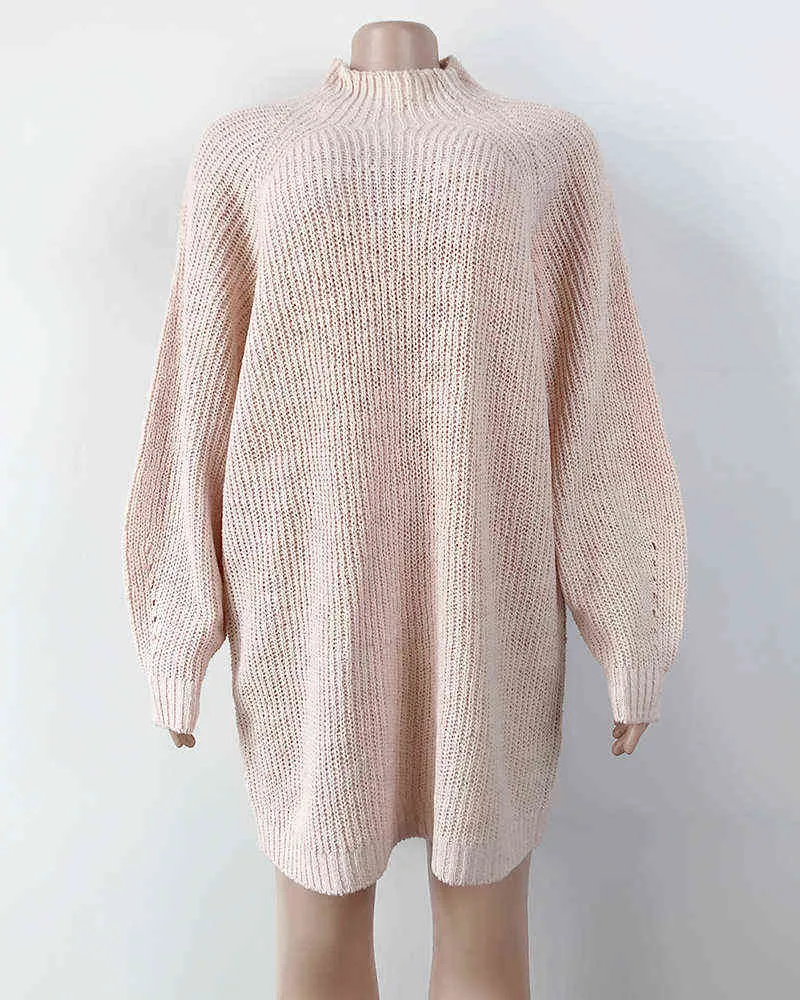 Women Turtleneck Oversized Knitted Dress Autumn Solid Long Sleeve Casual Elegant