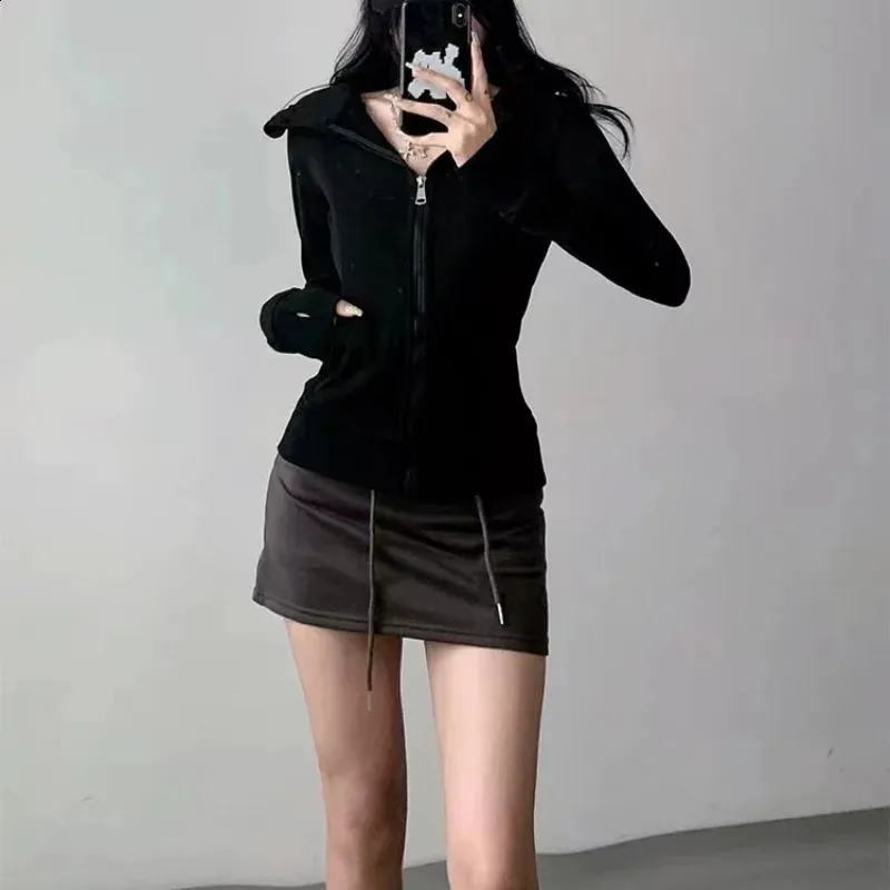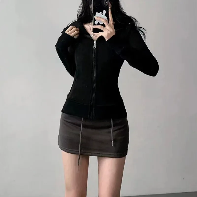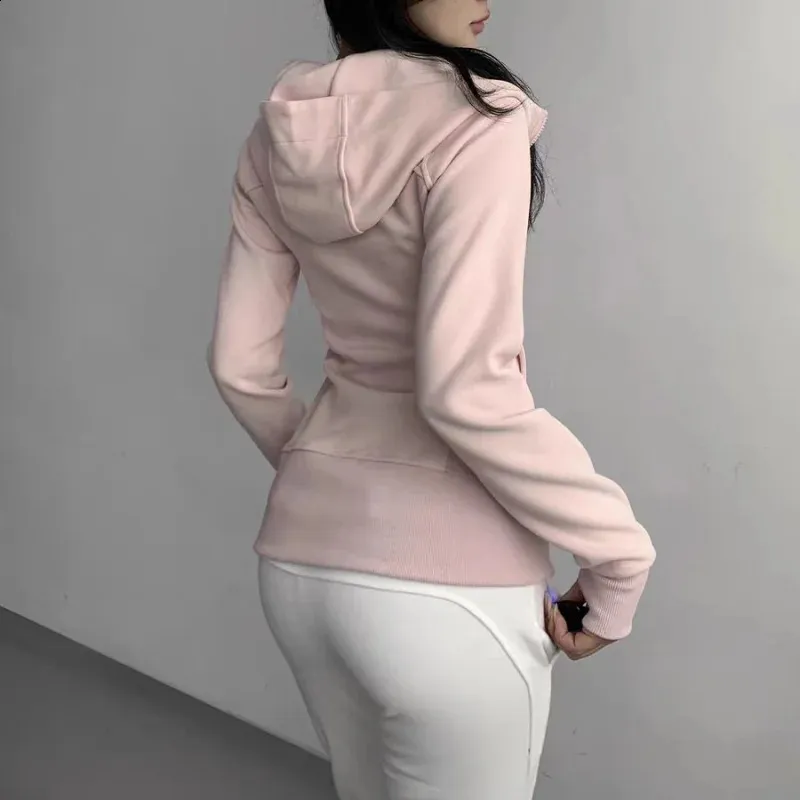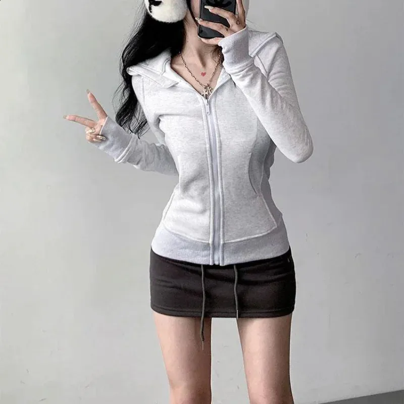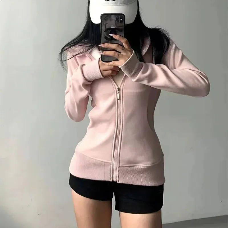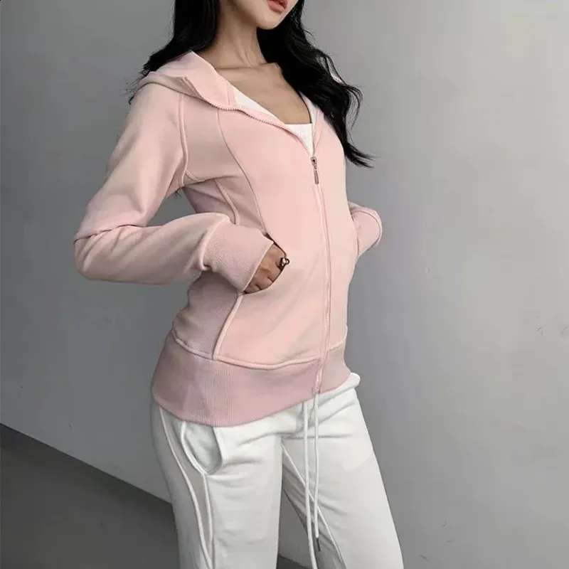 Casual Basic Zip Up Hooded Sweatshirt Solid Long Sleeve Hoodies Women