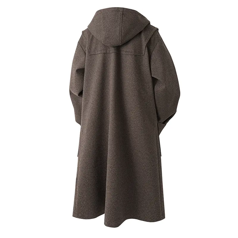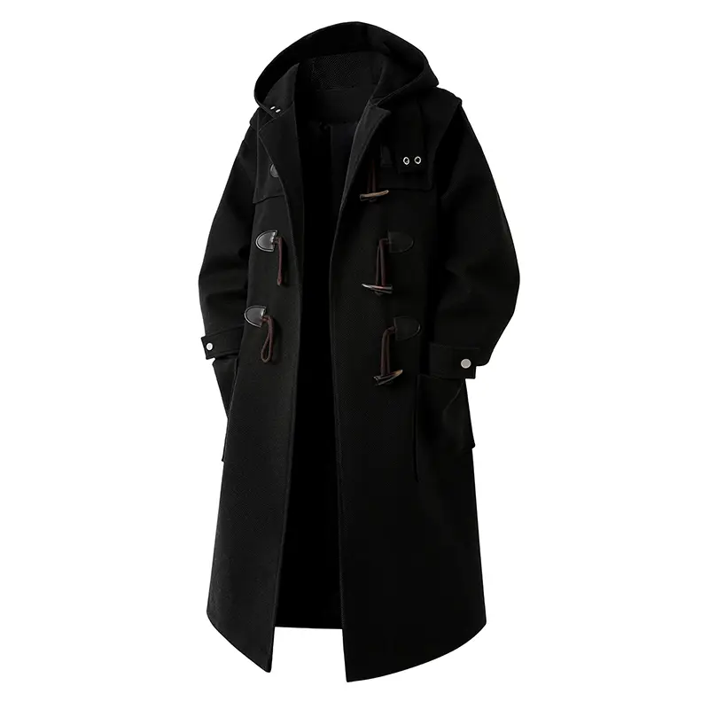 Men Thick Hooded Trench Coat Men Wool Blends Overcoat Men Casual Horn Button Woollen Coat Warm Loose Coat