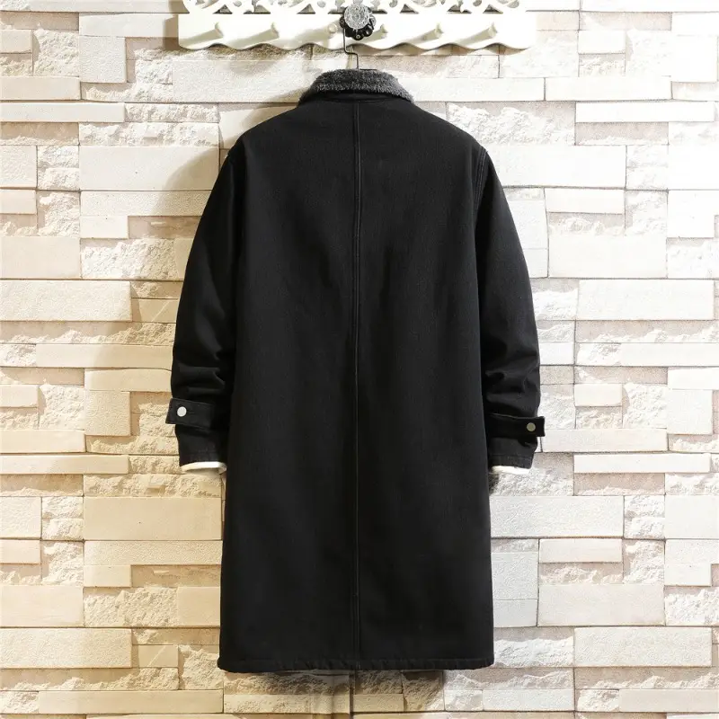 Denim Trench Coat Men's Day Retro Casual Loose And Fleece Lapel Coat