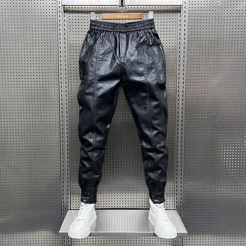 High-concerned Chemical:None Applicable Scene:Daily Decoration:Pockets Front Style:Pleated Length:Ankle-Length Pants Thickness:Midweight Fit Type:Regular Style:High Street Material:Faux Leather Size:S-2XL Color:Black Gender:Men..