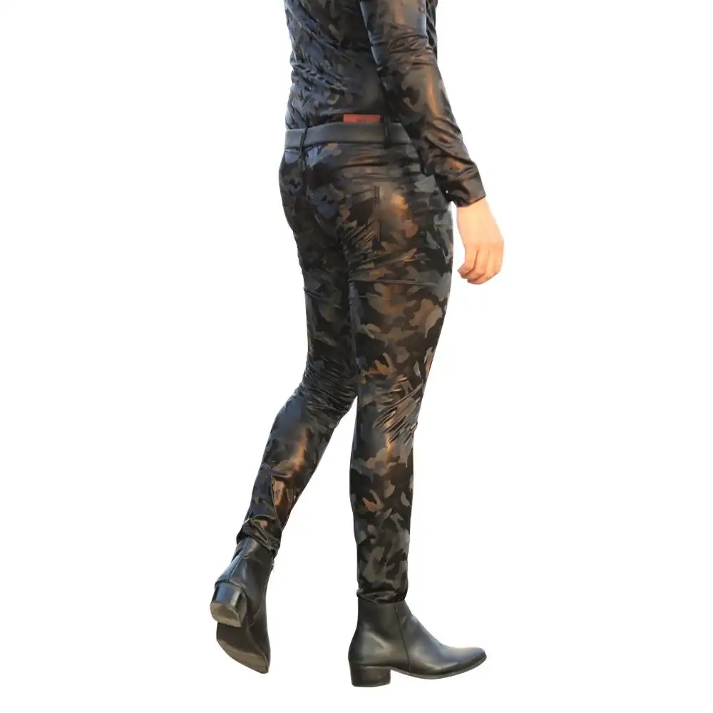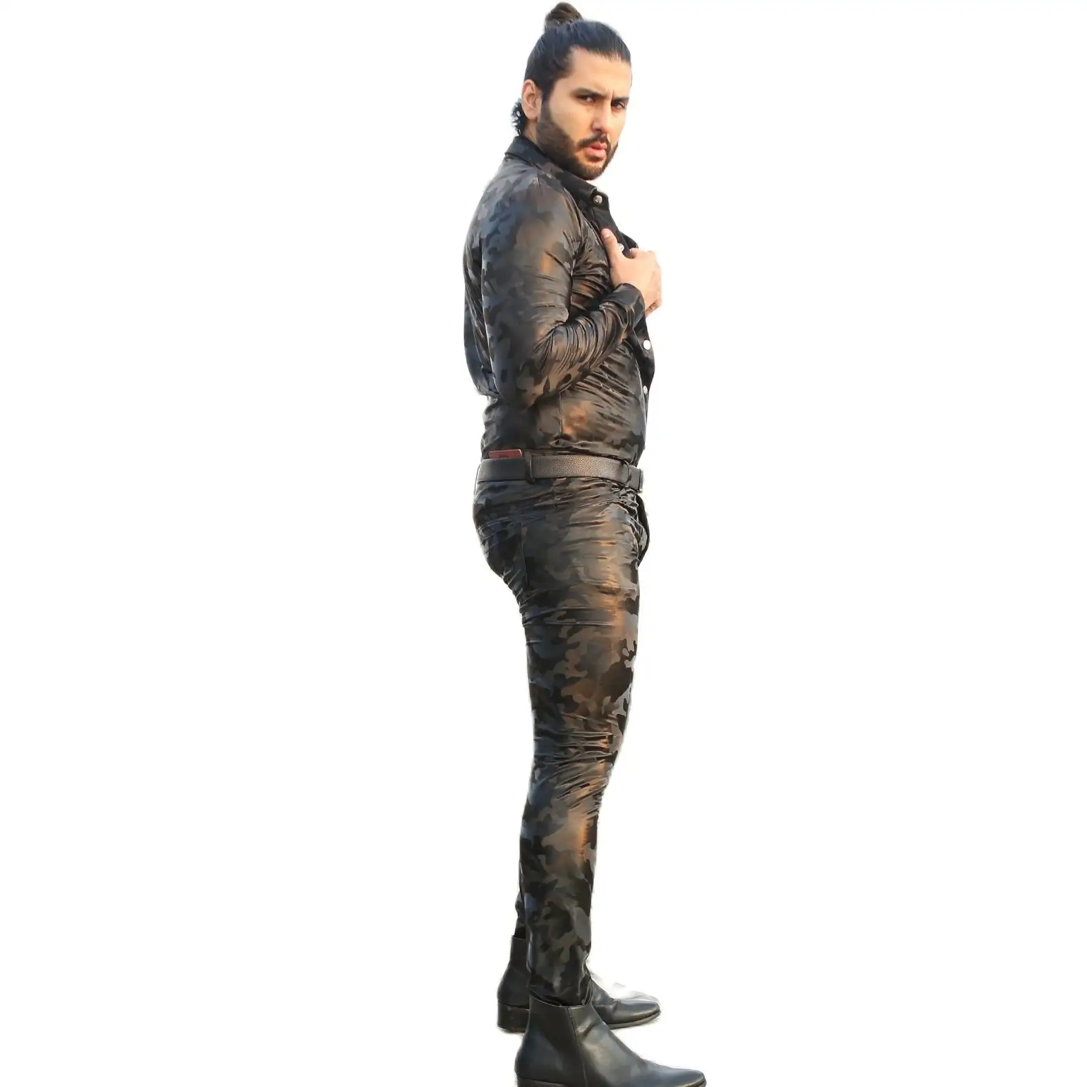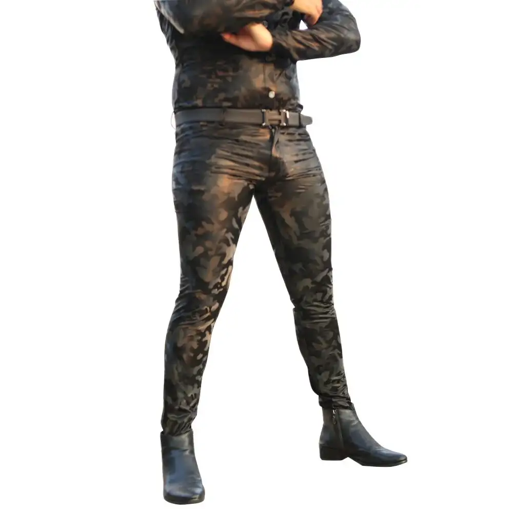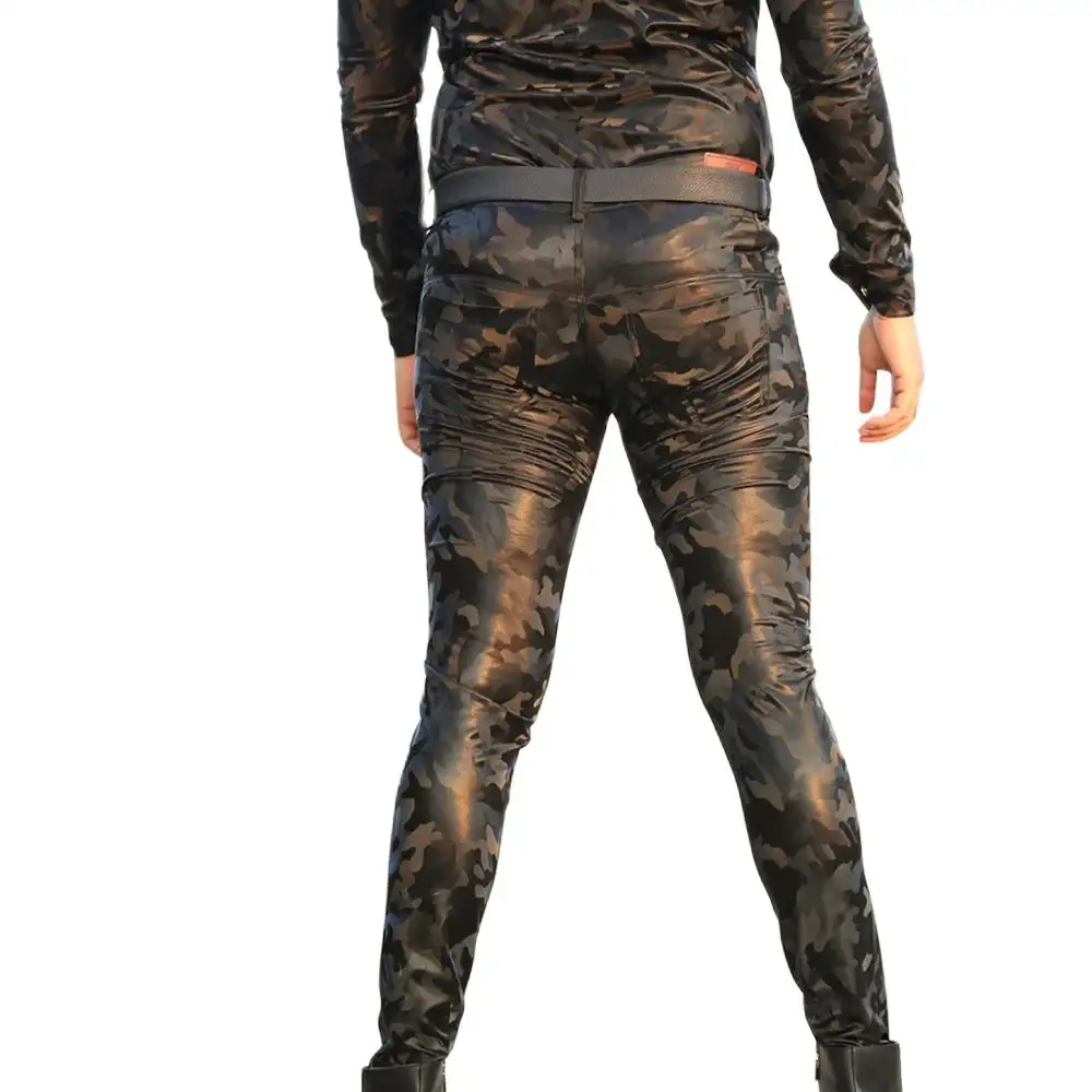 PU Leather Pants Skinny Jeans Camouflage Tight Slim Pencil Men's Casual Pants Trousers High-Elastic Motorcycle Trousers