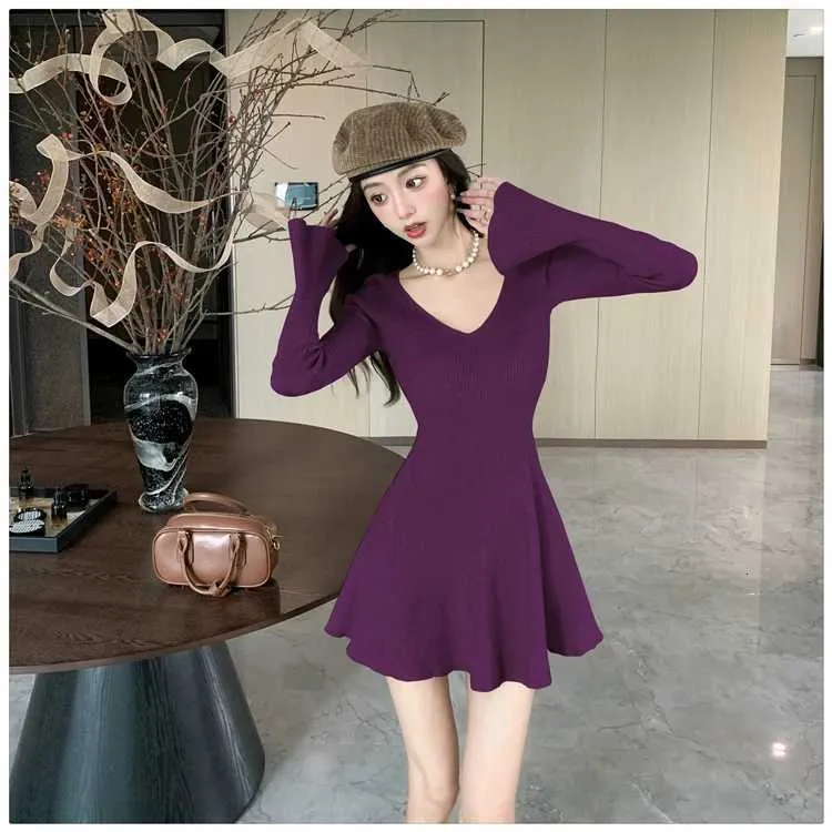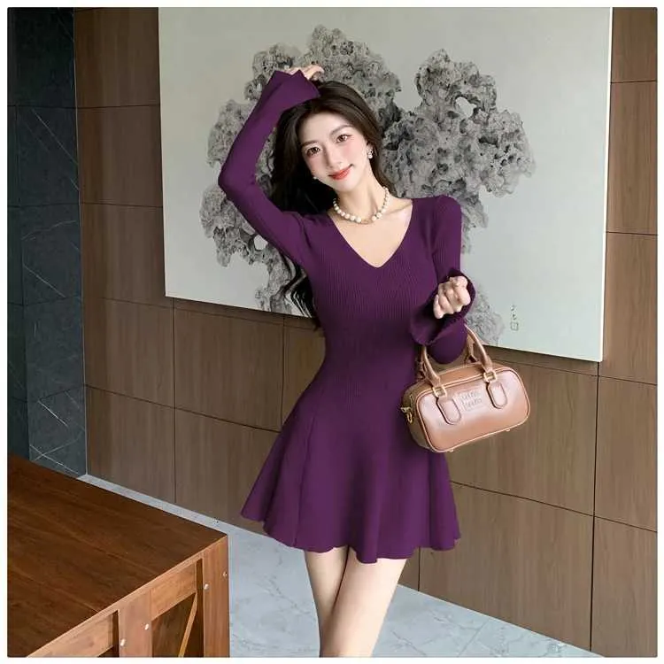 Occasion: Daily Outfit Sleeve Length: Long Sleeve Craft of Weaving: Knit Material: Synthetic Fiber Style: Casual Color: Black,Coppery,Purple Size: S-2XL Category: Casual Dresses..