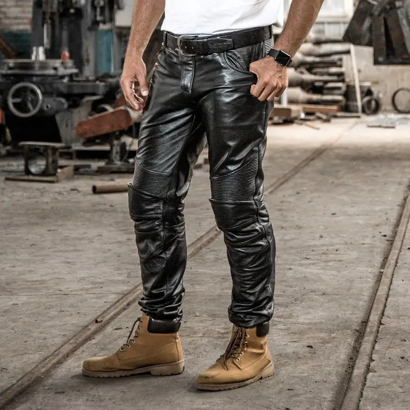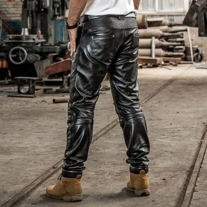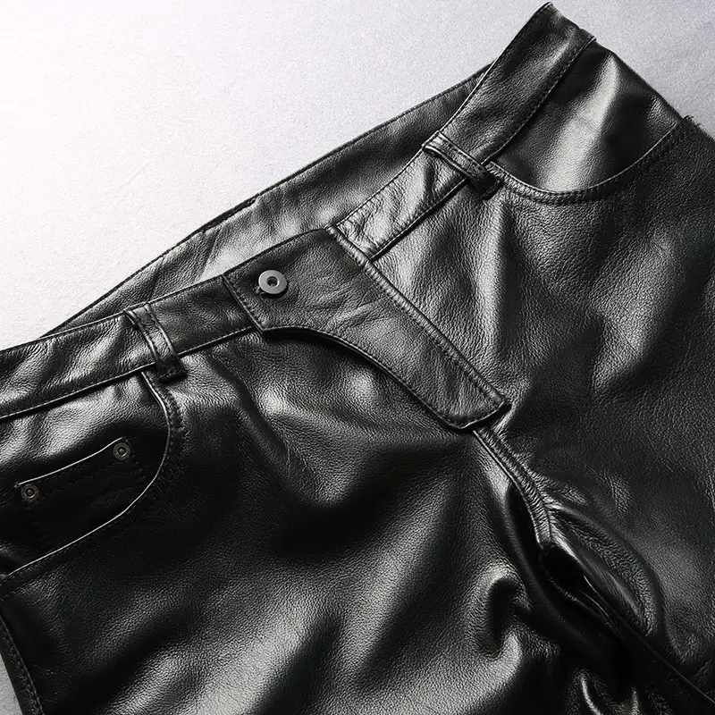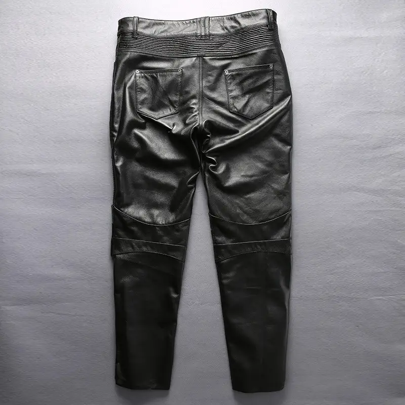 Windproof Cow Leather Pants Men Moto Biker Riding Genuine Leather Pants Man Long Trousers Cowhide
